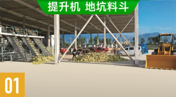 入场的鲜甜糯玉米棒机械装入地坑料斗,通过提升机自动送进布料震动器。