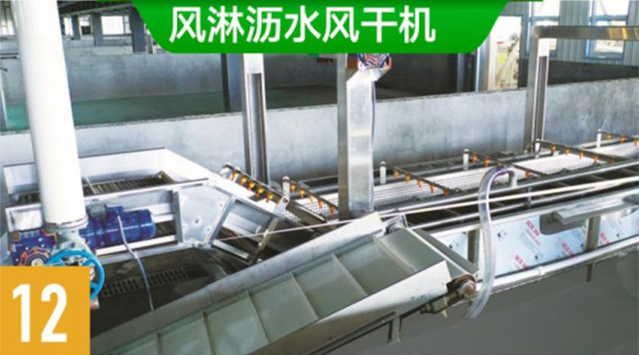 经过清洗的真空包装玉米进入风淋沥水风干机进行沥水、风干。至此,真空包装甜糯玉米加工过程全部完成,直接入库贮存。