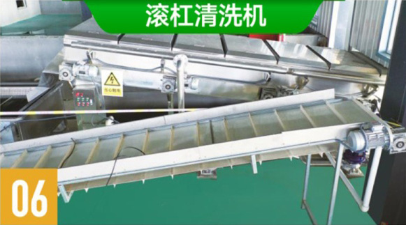 滚杠清洗机对修整好无皮鲜玉米棒进行进一步去杂和初步清洗,再自动送入下一道工序