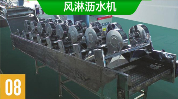 风淋沥水机利用密集排列的鼓风装置对进入设备清洗后的鲜玉米棒进行沥水